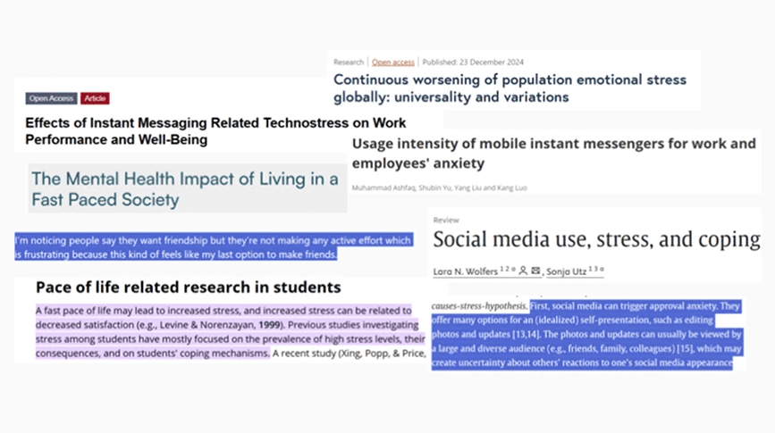 I conducted desk research on Google Scholar on the root causes of social media induced-stress